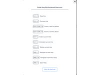 To open a Keyboard Shortcuts pop-up window, click on the keyboard icon at the top of the guide.
