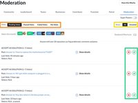 To open the Moderation page, click on the Moderation link in the upper-right of the page.
